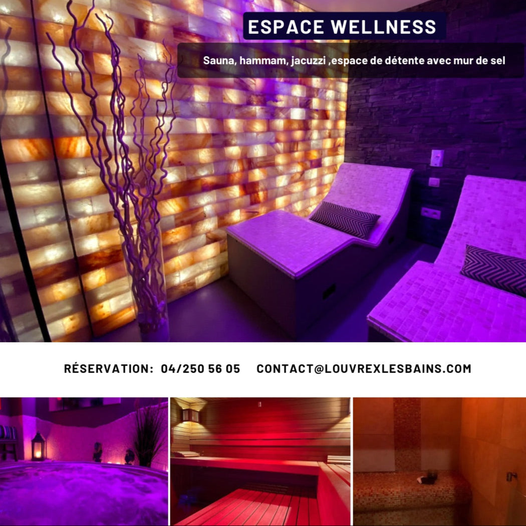 sauna, hammam, jacuzzi et espace de détente avec mur de sel
